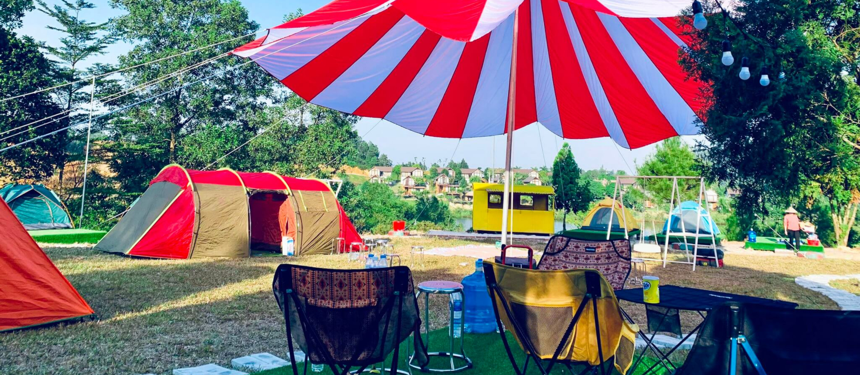 Bãi cỏ Bản Xôi có diện tích lớn, nhìn từ trên cao giống hệt như một hòn đảo nổi lên từ mặt hồ. Đây là nơi diễn ra các hoạt động vui chơi, lửa trại và tiệc BBQ. Ngoài ra, nơi này còn được thiết kế với nhiều trò chơi độc đáo như xích đu và đi thăng bằng trên gỗ, cho phép bạn thoải mái trải nghiệm.
